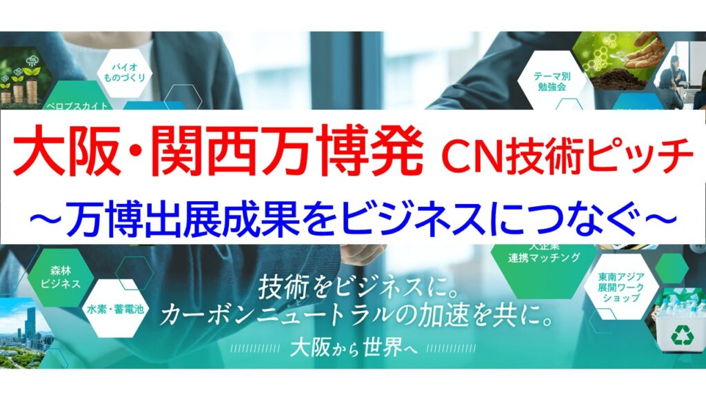 【12/19(金)開催】『大阪・関西万博発 CN技術のピッチイベント』in グラングリーン大阪北館 JAM BASE ~万博出展成果をビジネスにつなぐ~(オンライン参加) |